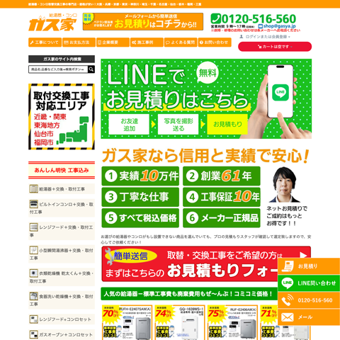 母体の住宅設備機器の販売会社のノウハウを生かしたガス工事専門店